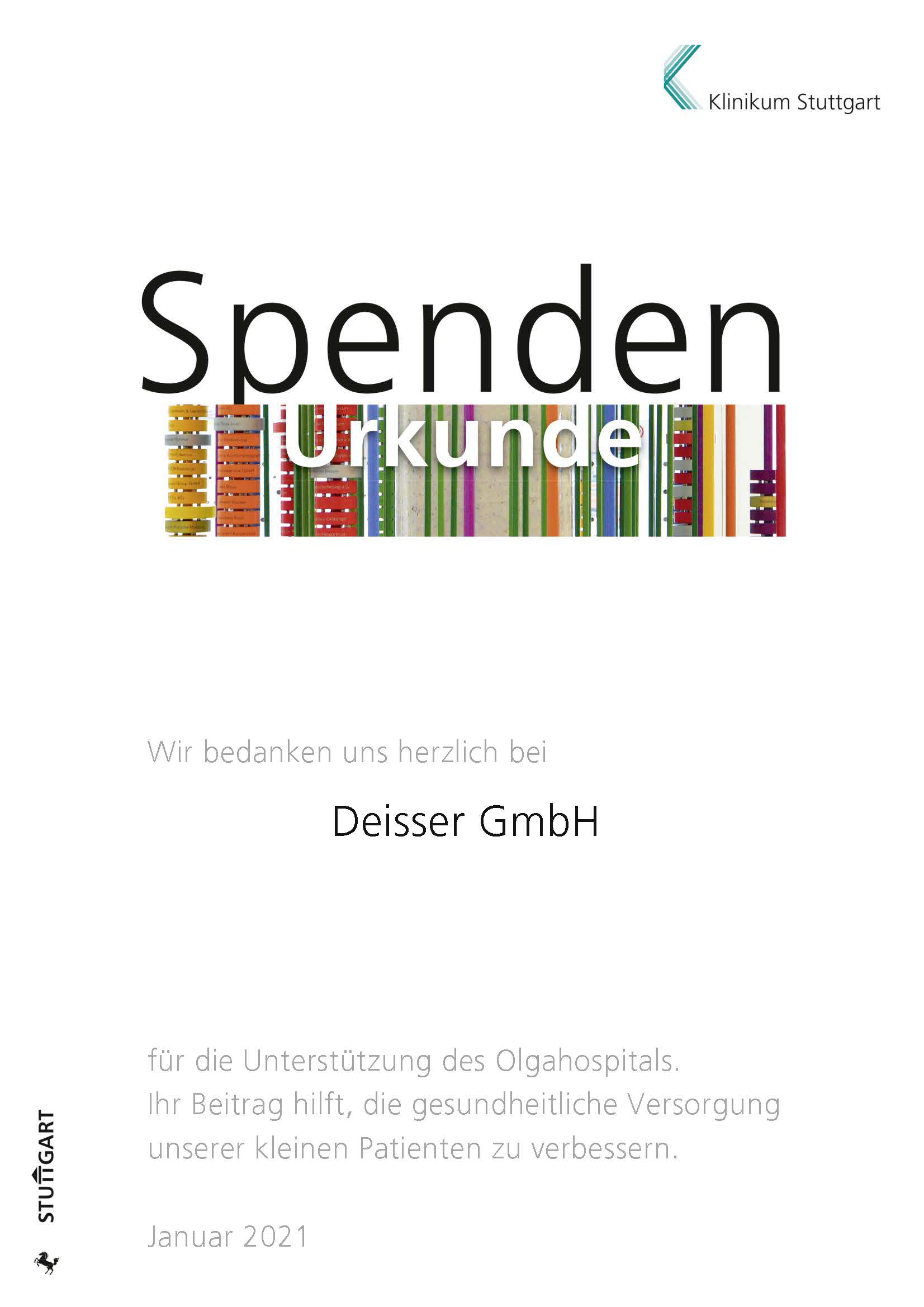 Wie bereits in den letzten Jahren, hat die Deisser GmbH das Klinikum Stuttgart (Neonatologie) mit einer Spende unterstützt.